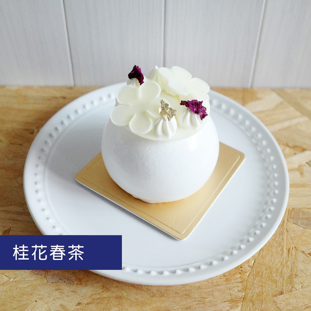 | 成份 | 金萱茶奶香慕斯 / 桂花洋梨庫利 / 杏仁蛋糕