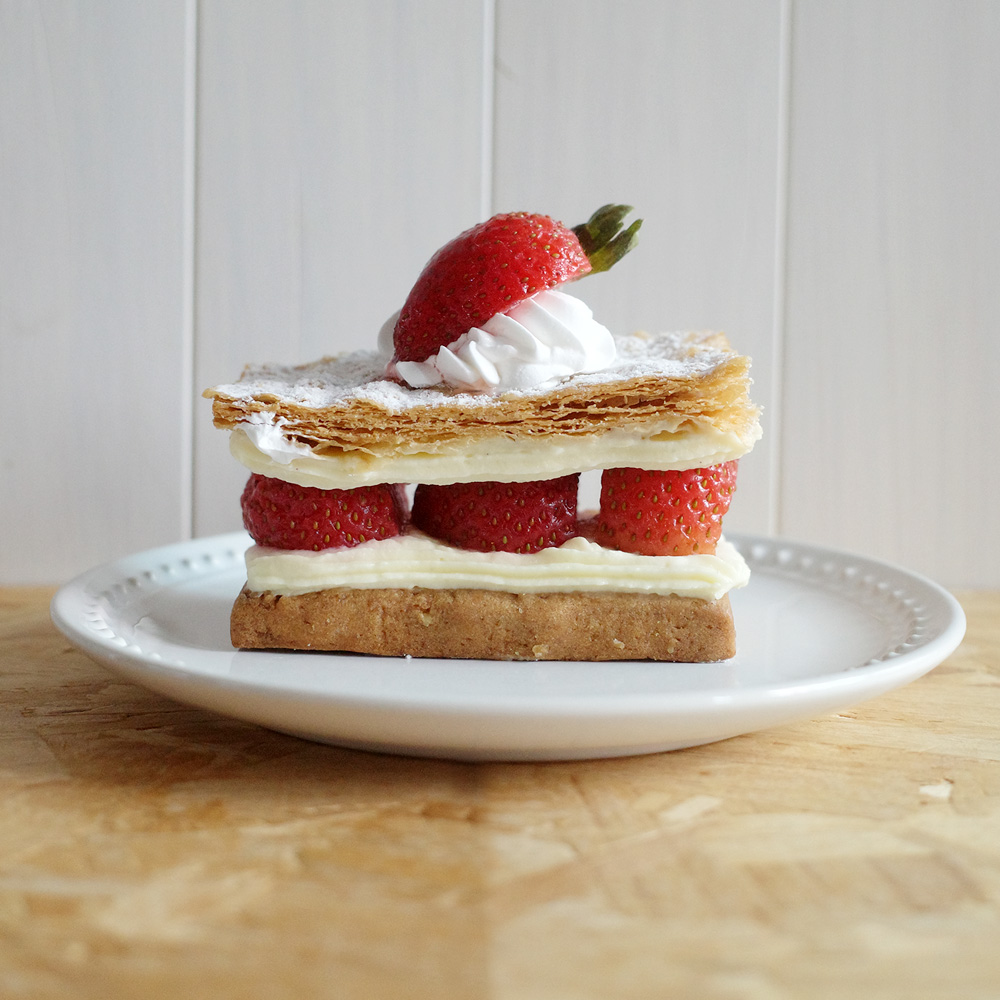 | 成份 | 新鲜草莓 / 千層派皮 / 山茶花卡士達