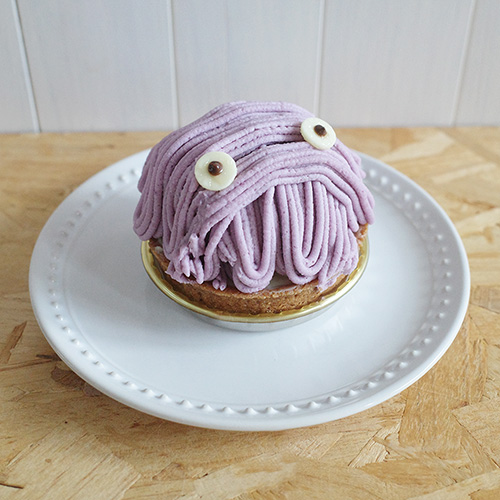 | 用杏仁塔殼搭配栗子內餡,再用紫薯內餡以及芋頭餡和鮮奶油調和做裝飾,不含任何色素哦。 |