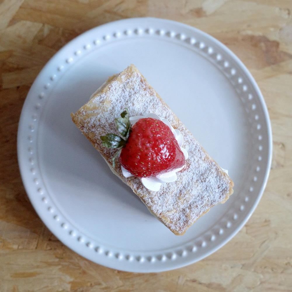 | 成份 | 新鲜草莓 / 千層派皮 / 山茶花卡士達